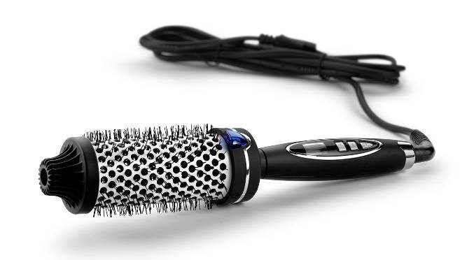 Professzionális meleg kefe. 45 mm átmérő.Kerámia és Tourmalin kristály bevonat. Speciális hőálló Nylon sörterész. LCD kijelző. 130- 230C fok között állítható hőfok. 3m – es vezetékhossz. Gömbcsuklós vezeték.