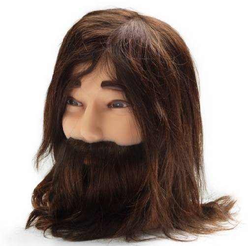 Szemléltető babafej. Fiú. Szakállas. 100% emberi hajból. Barna. 25cm hosszú hajhossz. Szemléltetőfej tartót, külön kell megvásárolni, nem tartozék!