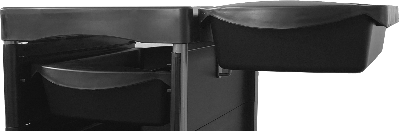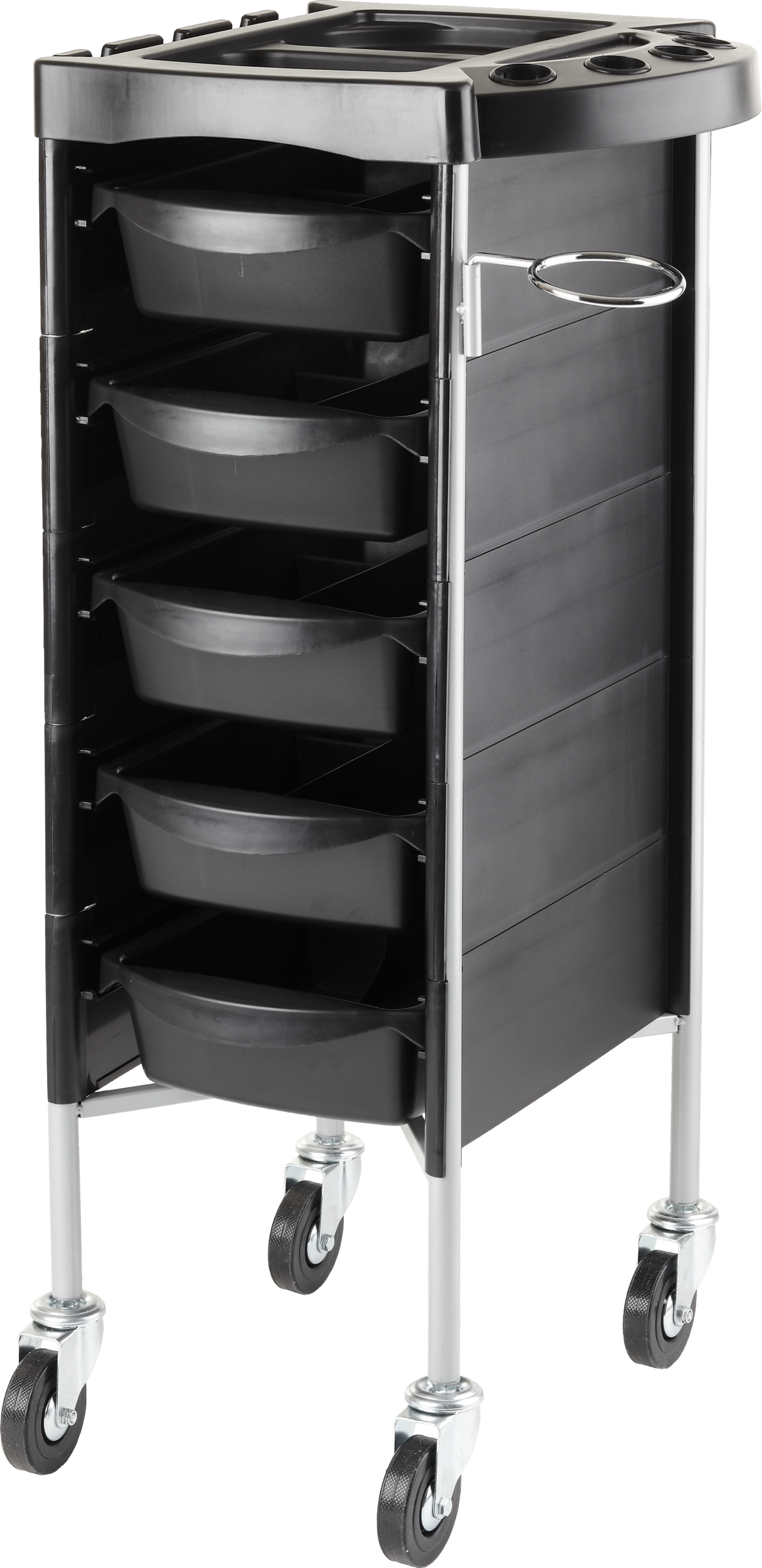 Eszközkocsi, fekete. 5 fiókkal, hajszárító tartóval. 88x40x40cm.