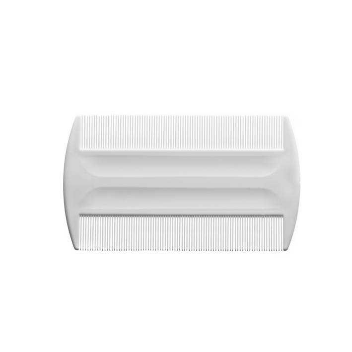 Dupla oldalú nagyon sűrű fogú műanyag fésű.