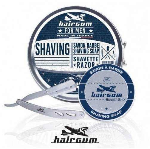 Borotva csomag. A csomag tartalma: 1 darab fém összecsukható borotva, 1 darab borotva szappan.