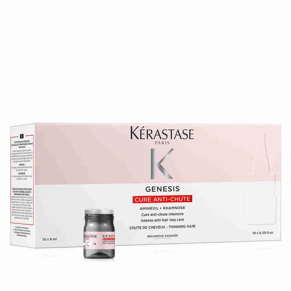 Az aminexil és gyömbér tartalmú Kérastase Genesis Ampoules Cure Fortifiantes Anti-Chute szérum extra segítséget nyújt fokozott hajhullás esetén. Hozzájárul a fejbőr élettani működésének javításához és óvja a káros külső hatásoktól.