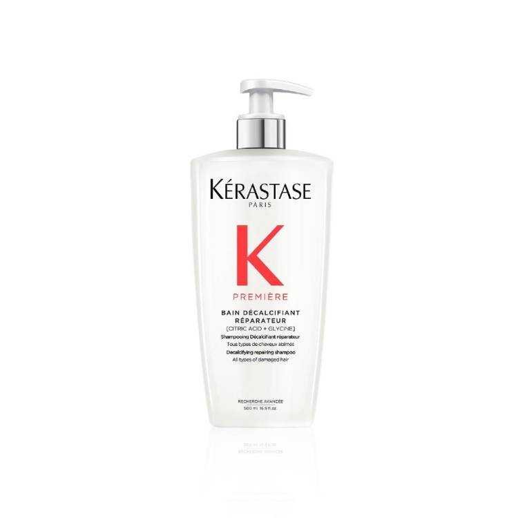 A Kérastase Première Bain Décalcifiant Réparateur egy regeneráló hatású kalciumeltávolító sampon, amely kémiai kezeléseknek erősen kitett vagy sérült hajon használható, bármilyen hajtípus esetén. Ez a szulfátmentes professzionális minőségű sampon gyengéden tisztítja a fejbőrt és a hajat, miközben eltávolítja a nem kívánt kalciumlerakódásokat, amelyek tovább súlyosbítanák a károsodások mértékét. A haj kívül-belül megújul, töredezettsége csökken és helyreáll az eredeti állapota.