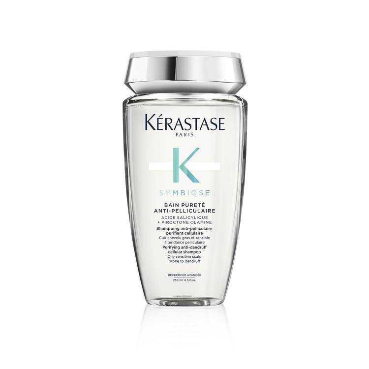 A Kérastase Symbiose Bain Pureté Anti-Pelliculaire egy szilikon- és szulfátmentes tisztító, korpásodás elleni celluláris sampon a zsíros, érzékeny, korpásodásra hajlamos fejbőrre. Pirokton-olamint tartalmaz, amely a korpásodás kialakulásának minden okára hat, valamint szalicilsavat a lélegző fejbőrért. Ápoló, mégis könnyű habzó formula eltávolítja a pelyheket, miközben megakadályozza a fejbőr zsírosodását. Azonnal hámlaszt és eltávolítja a látható korpát, nyugtatja a fejbőr érzékenységét, kiegyensúlyozza a fejbőr zsírosodását és fokozza a haj vitalitását.  Akár 7 hétig tartó korpásodás elleni hatékonyság. A Bain Pureté Anti-Pelliculaire, mint minden Kérastase sampon, is luxus és kellemes textúrával rendelkezik, az átlátszó folyékony formulához természetes sárga alaptónusokkal igazán luxus finom illattal párosul. Klinikai tesztek eredményei 34 emberen 4 hét alatt, heti 3 alkalmazással.