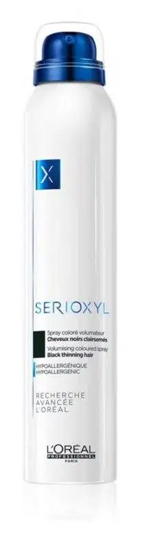 Azonnali dúsító hatás! A L‘Oréal Professionnel Serioxyl Volumizing Coloured Spray színező spray gondoskodik arról, hogy többé ne okozzon önnek gondot a finom szálú és lelapuló haj. Felhordást követően azonnal elfedi a ritkább területeket a fejbőrön és közben tömeget ad a hajnak. Ráadásul hipoallergén összetételének köszönhetően érzékeny fejbőrre is használható.