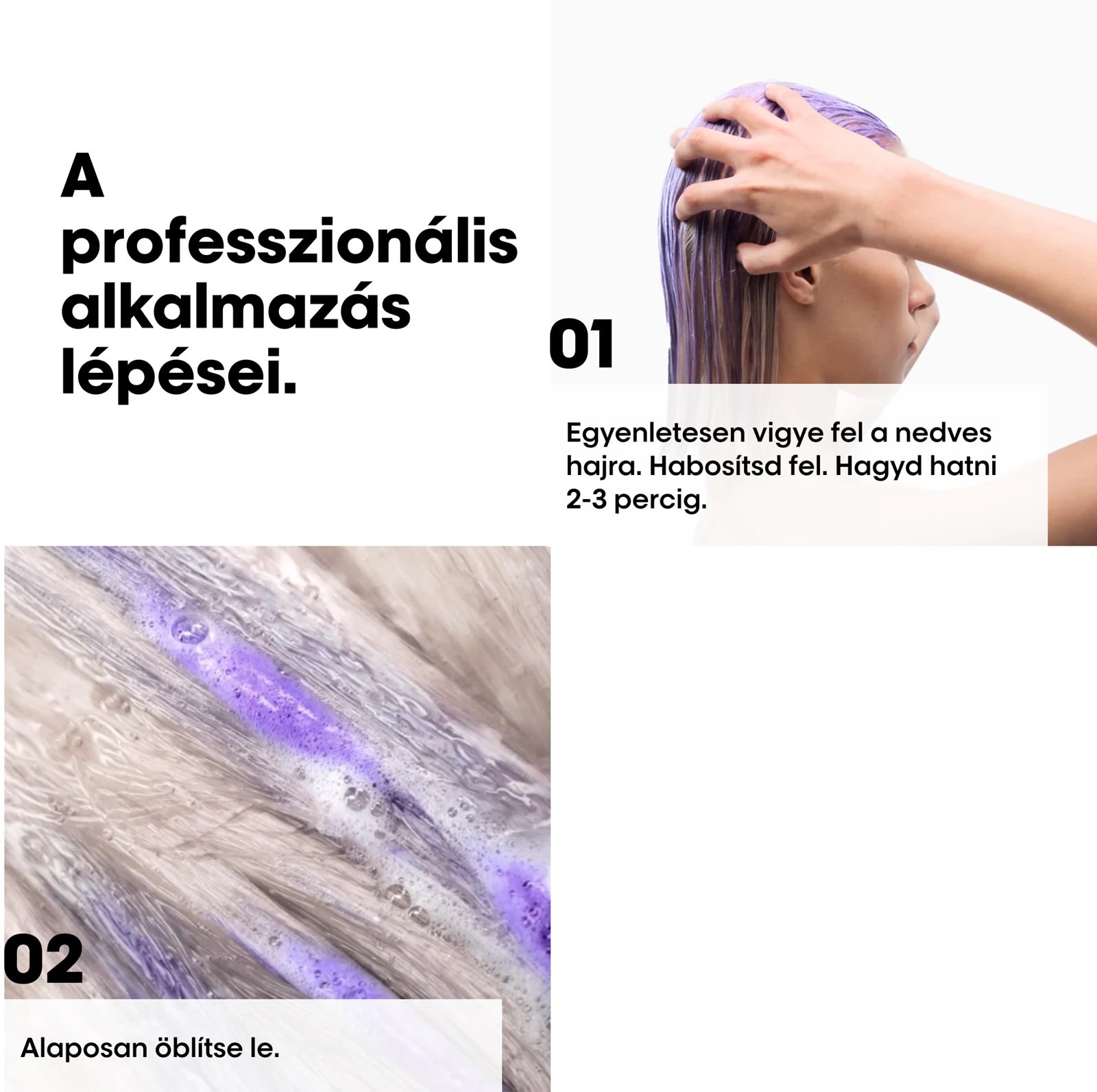 Fénysampon ősz hajra Színfrissítő technológia: megóvja az ősz hajat a sárgulástól, miközben a szilikon lesimítja a külső hajfelületet, ezáltal fényessé varázsolja a hajat.