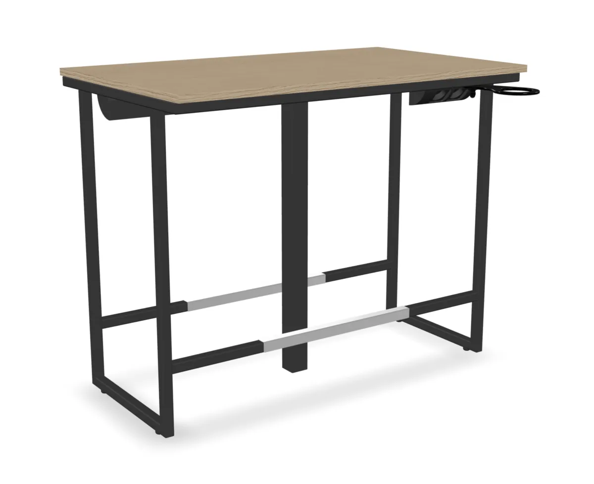 Supporting structure in metal with transparent matt black calamine finish, complete with central tube for cable management, power sockets, and satin stainless steel footrest with integrated cover.