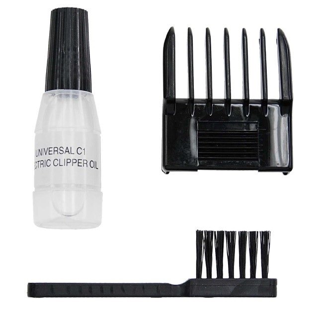 Kiegészítők: 1 darab műanyag fésűtoldalék, mellyel a vágási magasság 3 – 6 mm között állítható, tisztító kefe, olaj.