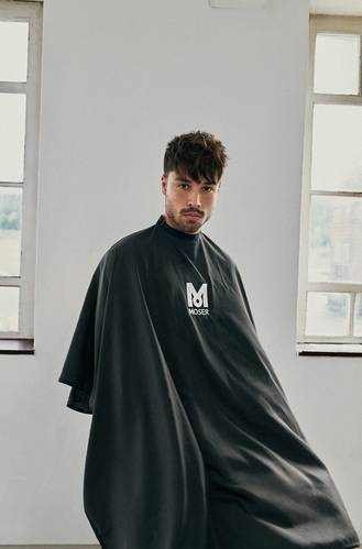 Hajvágó kendő, hímzett MOSER logóval. 100% Polyester. 135x 150cm. Antisztatikus. Vízlepergető. Kapcsos rögzítés. Mosógépben mosható, alacsony hőfokon.