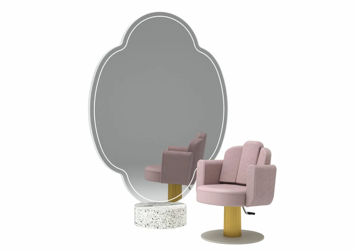 The new central mirror has a design inspired by the window decorations of Venetian palaces, a four-petalled rosette.