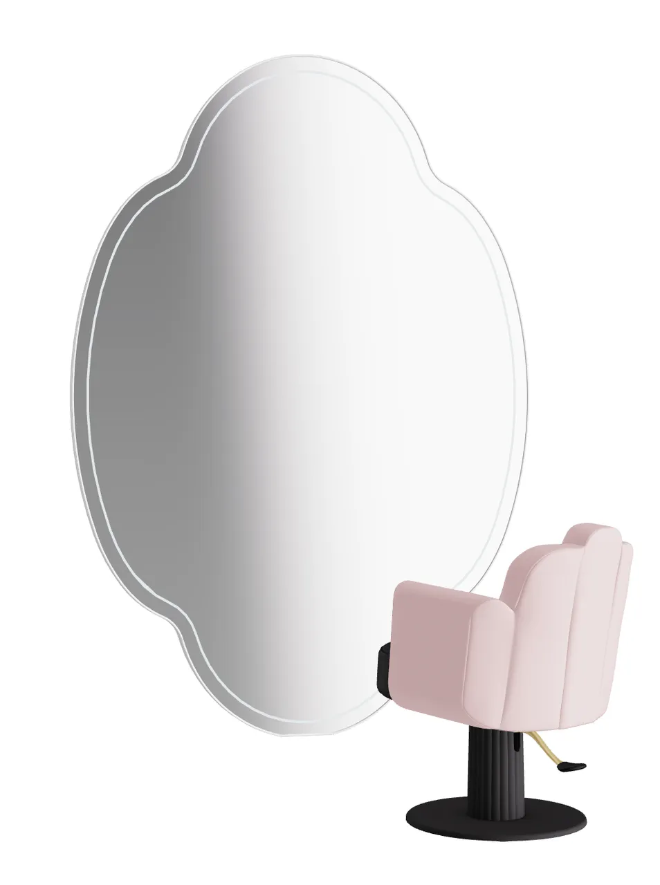 The new wall mirror has a design inspired by the decorations of the windows of the Venetian palaces, a rose window with four petals.