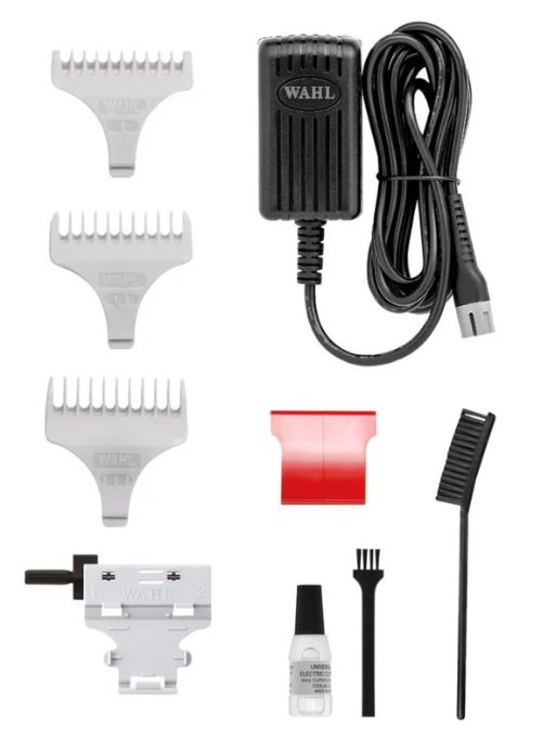 Kiegészítők: Akkumlátor töltő, Műanyag fésűtoldalék 1.5/3/4.5mm, vágófésű, fej állító készlet, fade brush, tisztító kefe, olaj.