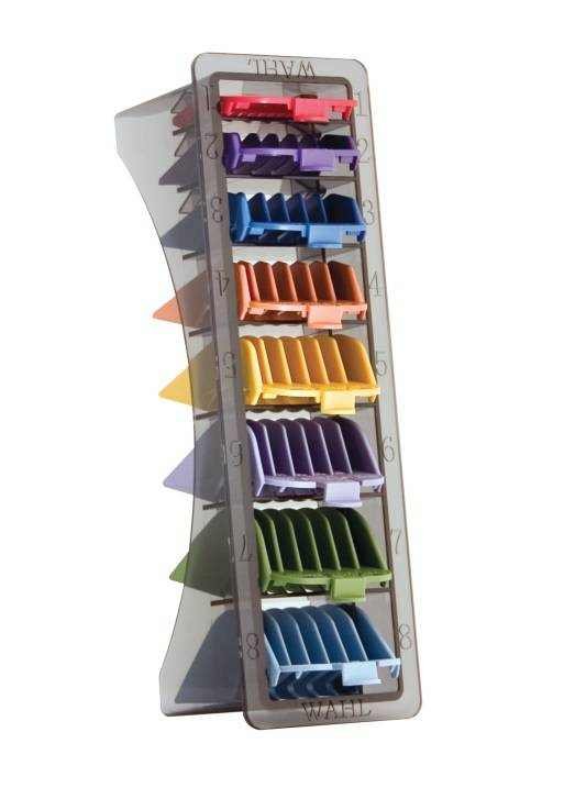 8 darados fésűtoldalék szett műanyag, színes, Wahl vezetékes, vezeték nélküli hajvágógépekhez. 3/6/10/13/16/19/22/25mm.