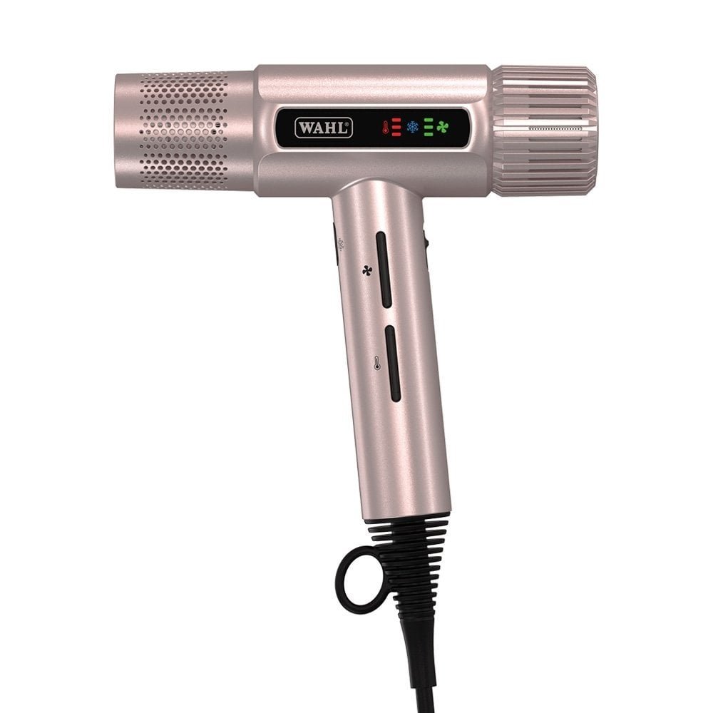 A Wahl Vanquish™ új mércét állít fel a hajszárítók között, szabályozott légáramlást és hatékony teljesítményt biztosít a gyors, egyenletes hajszárításhoz. A profiknak és az otthoni felhasználóknak egyaránt előnyös a könnyű kialakítás, az erőteljes digitális motor és a SmoothTone™ technológia. A Vanquish™ kiemelkedik a gyors szárításban a FlowControl technológiával, amely egyenletes hőt és erőteljes légáramlást biztosít, amely egyenletesen szárítja a hajat, miközben védi a haj integritását az egészséges fényesség érdekében. A SmoothTone™ motorrendszer eltávolítja a durva frekvenciákat, és alacsonyan tartja a hangerőt, így szárítás közben tovább beszélgethet az ügyfelekkel. A karcsú és könnyű kialakítás segít megelőzni a csuklófáradást. A mindössze 340 g-os súlyával a Vanquish™ a szalonban vagy otthon hosszabb ideig tartó hajszárításnál is nagy segítséget jelent. A Vanquish™ három prémium mágneses tartozékkal rendelkezik, amelyek különböző stílusokhoz használhatók. A normál fúvóka, a széles fúvóka és a diffúzor mágnesesen illeszkedik a hajszárítóra, a biztonságos formázás és az egyszerű átváltás érdekében. A négy hő- és három sebességfokozatot megjelenítő LED-képernyővel, a beállítások rögzítését biztosító memóriafunkcióval és az egyszerű karbantartást biztosító automatikus tisztítási funkcióval. A Wahl Vanquish™ a hajszárítók következő generációjának lécét emeli. Három mágneses tartozékot tartalmaz az egyenes, göndör vagy göndör frizura elkészítéséhez.