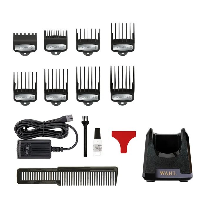 Kiegészítők: Dokkoló egység, akkumlátortöltő, tisztító kefe, olaj, műanyag fésű, 1,5/3/4,5/ 6/10/13/19/25 mm- es műanyag fésűtoldalék fémmel erősítve.