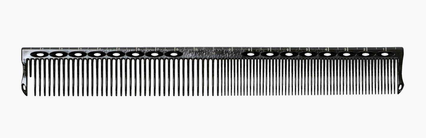 Professzionális hosszú carbon vágófésű. Mércés. Hullámos fog kialakítás. A fésű gerincén kialakított mérce pontosabb munkát tesz lehetővé.  Ideális tanulásnál. A precíziós, szabadalmaztatott leválasztó fej, ezáltal, könnyebb, gyorsabb vékonyabb paneleket leválasztani. A fésűn lévő lyukak miatt könnyebb a fésű tartása, súlyelosztása. Természetes lágy tartás. Erős fogak. 220 C fok-ig hőálló. 200mm